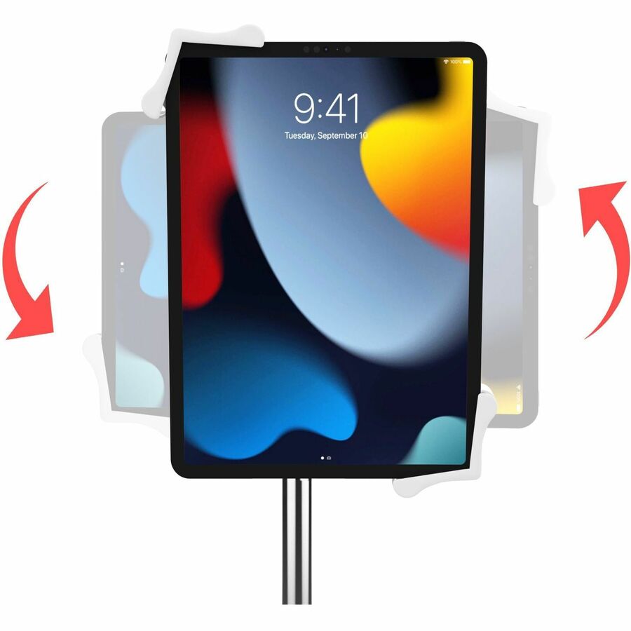 Cree una estación de trabajo móvil y ajustable para su tableta con el soporte de suelo compacto de cuello de cisne de CTA Digital con accesorios para tabletas de 7-13 pulgadas. Ofrece una movilidad excepcional, capacidad de ajuste y un estilo elegante para cualquier centro médico, consultorio u hospital. La base de este soporte es un cuello de cisne potente y flexible con cabezal inclinable para una fácil rotación de 360 grados. Los usuarios crean la configuración perfecta con el poste telescópico de altura ajustable, la cesta de almacenamiento, el soporte para batería y el práctico asa. Las ruedas giratorias incluidas se fijan fácilmente a la base del soporte, lo que facilita su movilidad en cualquier lugar. El soporte para tableta de ajuste rápido se desliza y sujeta su tableta de 7-13 pulgadas por las esquinas, dejando los puertos y botones completamente accesibles. Compatible con iPad de 10,2 pulgadas de séptima a novena generación, iPad Pro de 12,9 pulgadas, iPad Pro de 11 pulgadas, iPad Mini 1-6, iPad Air, Samsung A7 y 8, y muchas otras tabletas de 7 a 13".
