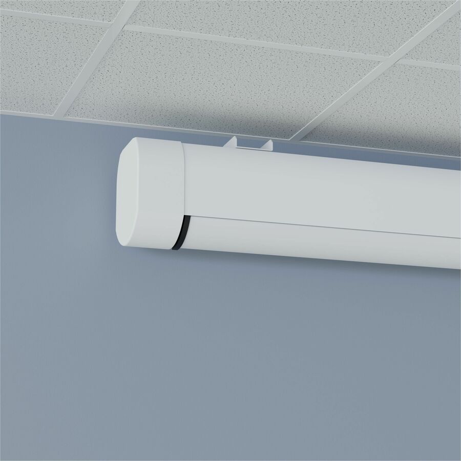 Myriad Reveal es una pantalla eléctrica para montaje en pared y techo, disponible en tamaños de 4 a 5 m (14 a 16 pies) de ancho en formatos HDTV 16:9 y panorámico 16:10. Los productos tensados están disponibles con superficies compatibles con HD Progressive 16K y rechazo de luz ambiental Parallax. Cuenta con soportes versátiles y ajustables que se adaptan a cualquier preferencia de montaje. La instalación es sencilla gracias a la nivelación integrada de la carcasa (±0,5" [12,7 mm] verticalmente) y al centrado (±6" [152,4 mm] horizontalmente). Una innovadora barra con peso, en los modelos SightLine, funciona también como puerta de cierre (negra) para mimetizarse con el borde cuando la pantalla está completamente desplegada, y la barra gira suavemente a blanco para integrarse con la elegante estética de la carcasa en cascada cuando está retraída. Disponible en todos los modelos Myriad, SightLine, la función de caída de cable delgado de Da-Lite, suspende elegantemente la superficie de la pantalla y elimina la caída negra (el borde negro sobre la pantalla de proyección). Especificar la distancia de caída al realizar el pedido es cosa del pasado. Ahora, la colocación vertical de la pantalla puede variar, ya que los cables admiten distancias de caída de hasta 5 m (16 pies) (estándar) entre el techo y la parte superior de la pantalla, lo que facilita el proceso de pedido. Además, esta función crea espacio útil sobre el área de visualización para preservar los intereses arquitectónicos y permite la colocación de cámaras y altavoces. Las pantallas Myriad son ideales para grandes espacios de reuniones, centros de conferencias, aulas, aulas grandes, lugares de culto y salones de hotel. Una plataforma global de fabricación global (EE. UU. y EMEA) para sus implementaciones globales. Se trata de una nueva generación de pantallas.