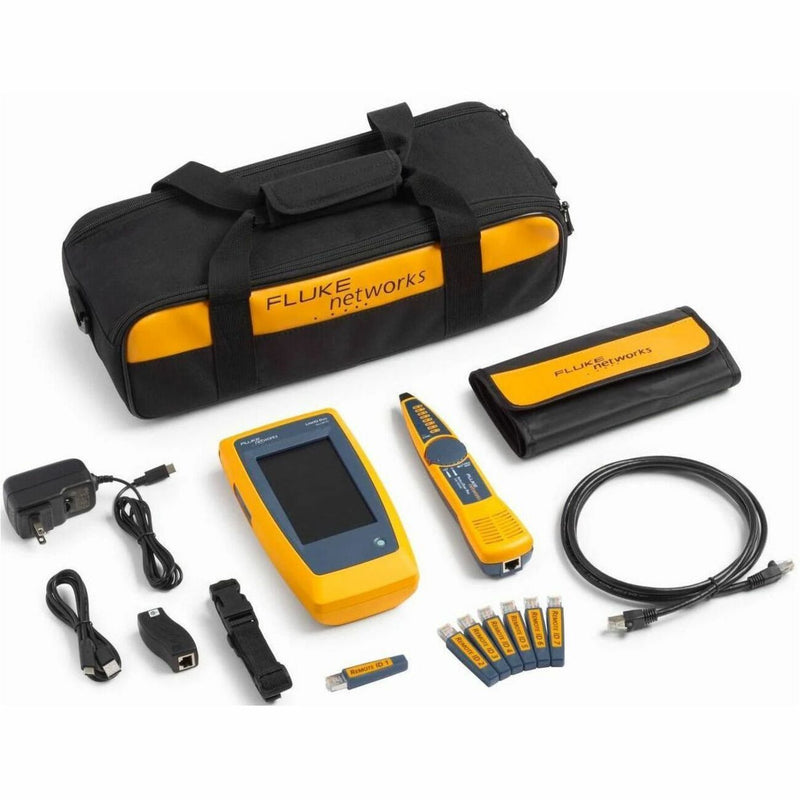 - Pruebas de rendimiento de cables hasta 10GBASE-T más resolución de problemas (distancia a la falla, mapa de cables, generación de tonos)