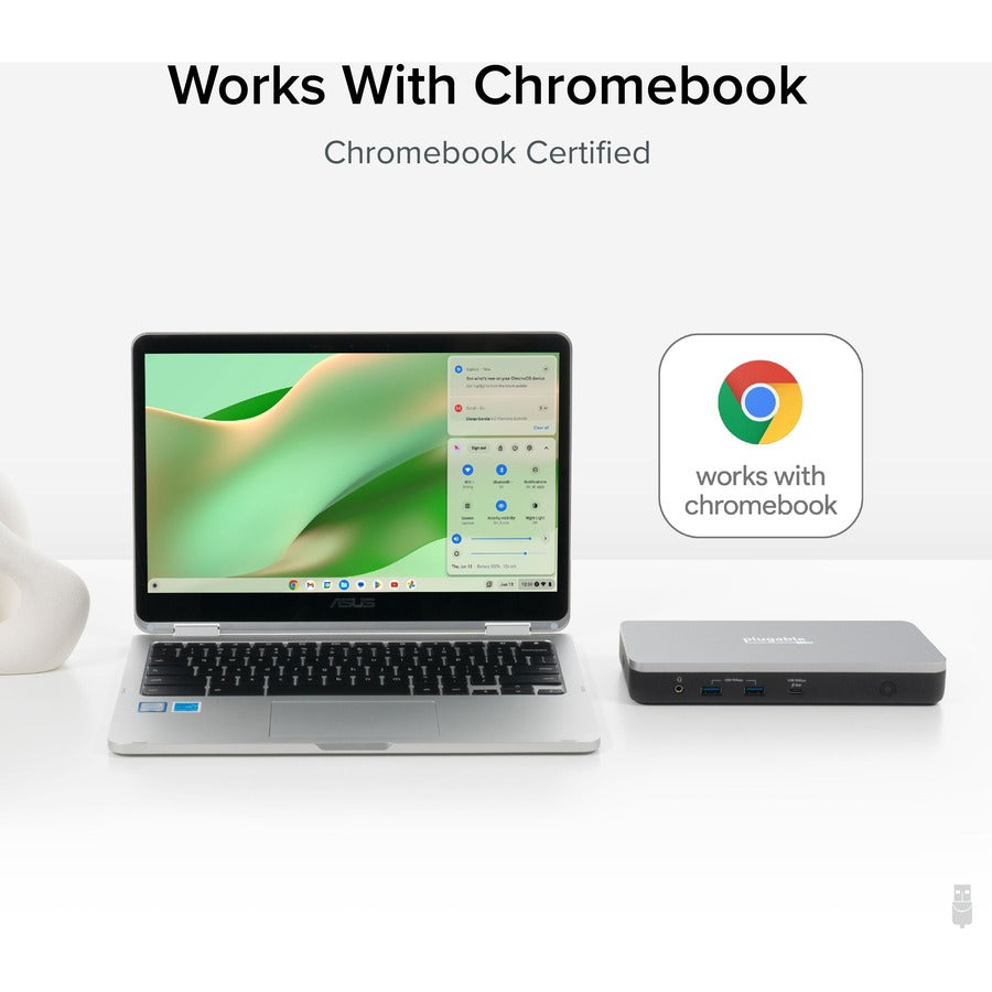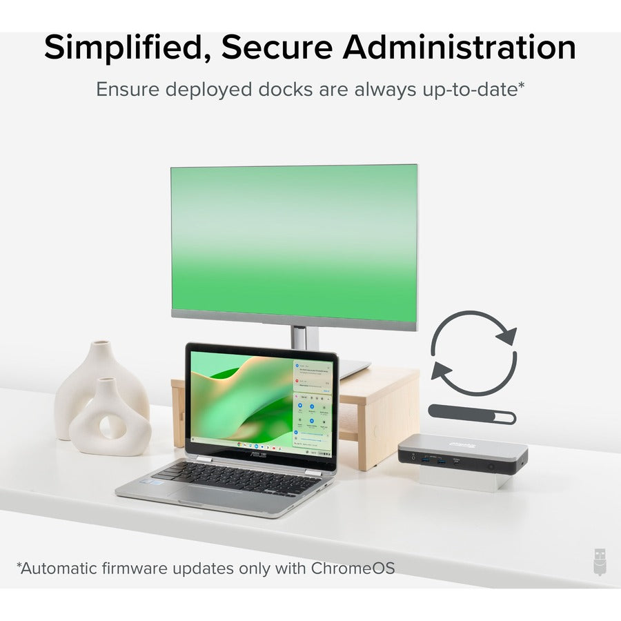 "Compatible con Chromebook" implica mucho más que una simple declaración de compatibilidad. De hecho, es una insignia bastante difícil de conseguir. Esto se debe a que Google prueba exhaustivamente las bases de conexión para portátiles que la incluyen para garantizar que el dispositivo "funcione a la perfección con dispositivos ChromeOS actuales y futuros". También incluye otras funciones, como actualizaciones automáticas y seguras de firmware mientras la base USB-C está conectada a una Chromebook. Es perfecto para garantizar que los empleados siempre tengan las últimas mejoras y funciones de compatibilidad.