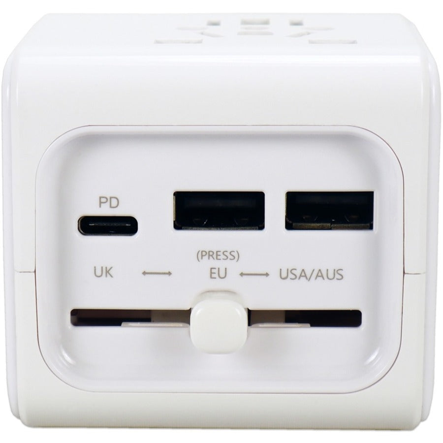 QVS Premium World Travel Power Adaptor with USB-C & Dual-USB Charger Ports