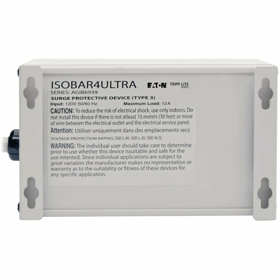Protector contra sobretensiones Eaton Tripp Lite serie Isobar de 4 tomacorrientes, cable de 1.8 m con enchufe en ángulo recto, 3330 julios, LED de diagnóstico, carcasa metálica