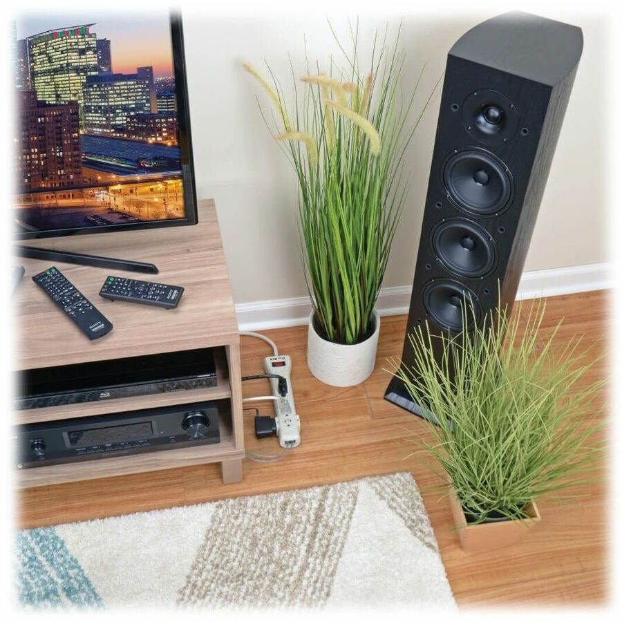 El supresor de sobretensiones ofrece una completa supresión de sobretensiones de CA y de línea telefónica para una protección integral de estaciones de trabajo, computadoras de escritorio, sistemas de telecomunicaciones y otros dispositivos electrónicos sensibles. La supresión de sobretensiones de CA de alta resistencia protege los equipos conectados contra daños y problemas de rendimiento causados por sobretensiones transitorias. El juego de conectores RJ11 para supresión de línea telefónica protege líneas de módem de acceso telefónico y DSL, máquinas de fax, teléfonos inalámbricos y más. El SUPER7TEL15 ofrece siete tomas de corriente, un cable extra largo de 4,5 m con un enchufe angular compacto y LED de diagnóstico para confirmar la conexión a tierra de la toma y el estado de la supresión de sobretensiones. La supresión de CA de alta resistencia, con una potencia nominal de 2520 julios, protege los equipos contra sobretensiones y ruido en la línea. El fusible térmico a prueba de fallos protege contra incendios y otros daños en caso de una sobretensión o sobretensión extrema y prolongada. La carcasa blanca del supresor, con ranuras de montaje tipo cerradura y tres tomas de corriente designadas para transformador, ofrece una protección práctica para equipos y accesorios de computadoras de escritorio.