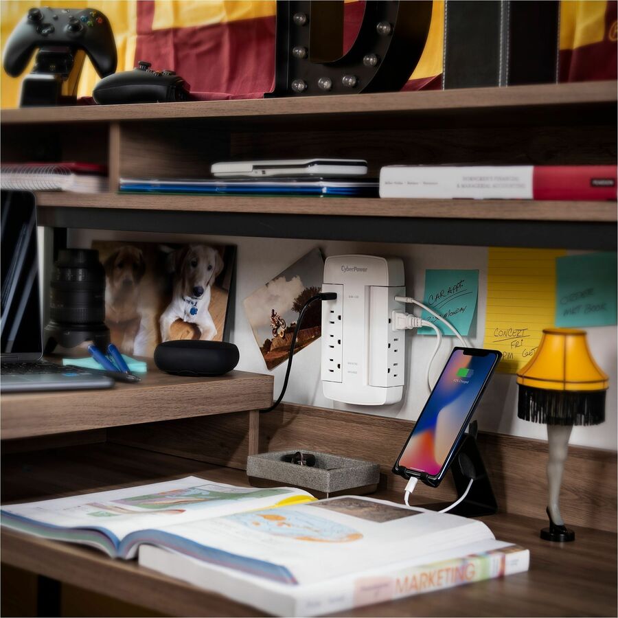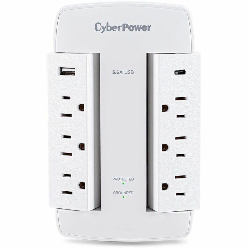 The CyberPower CSP600WSURC5 is ideal for Home/Office protection with 900 joules, 6 swivel outlets, 2 USB charge ports (3.6 Amps shared), and a convenient wall tap design. The CSP600WSURC5 has outlets that swivel 90 degrees left or right to make it easy to manage, organize, and assure cords are low profile - great for tight plug-in locations.