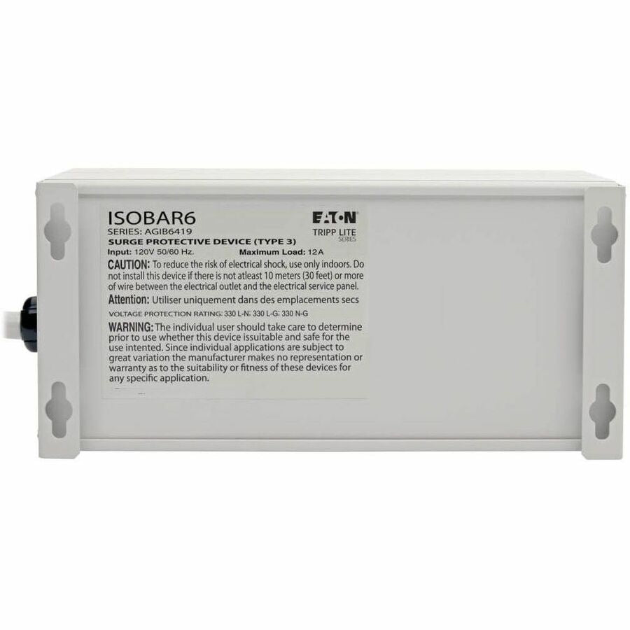 Protector contra sobretensiones Eaton Tripp Lite serie Isobar de 6 tomacorrientes, cable de 1.8 m (6 pies) con enchufe en ángulo recto, 3330 julios, LED de diagnóstico, carcasa metálica
