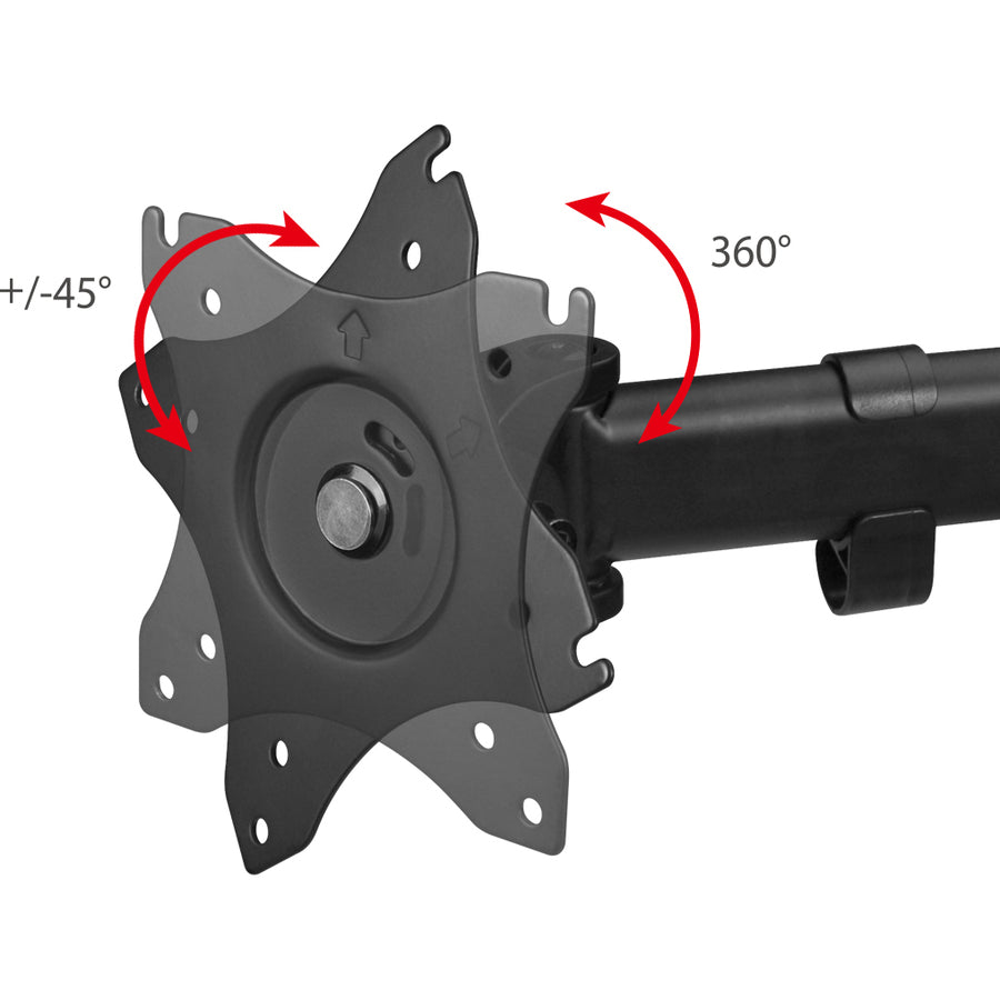 • Admite ángulos de inclinación de +/- 45°, ángulos de giro de 180° (izquierda/derecha) y brazo giratorio de 180° para una mejor posición de visualización.