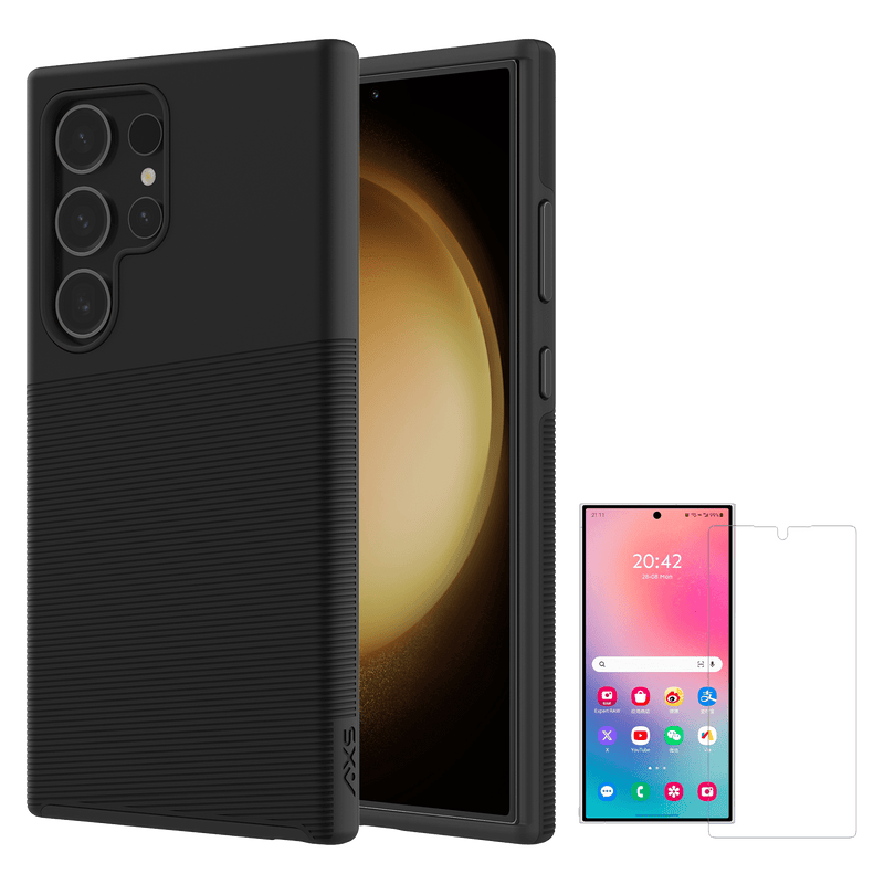 Axs - Funda Protech Plus y protector de pantalla Armorglass para Samsung Galaxy S24 Ultra - Negro
