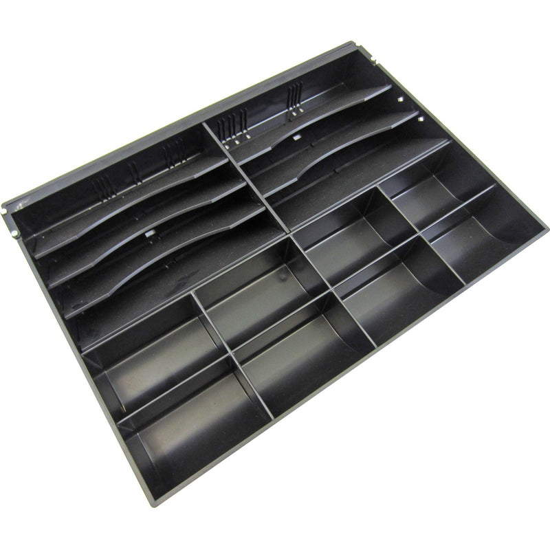 Anchos de billetes y monedas fijos, 7 billetes x 8 monedas, billetes inclinados, apto para euros, libras esterlinas y China. Medidas de la caja: 391 x 282 x 61 mm (15,4 x 11,1 x 2,4 pulgadas).