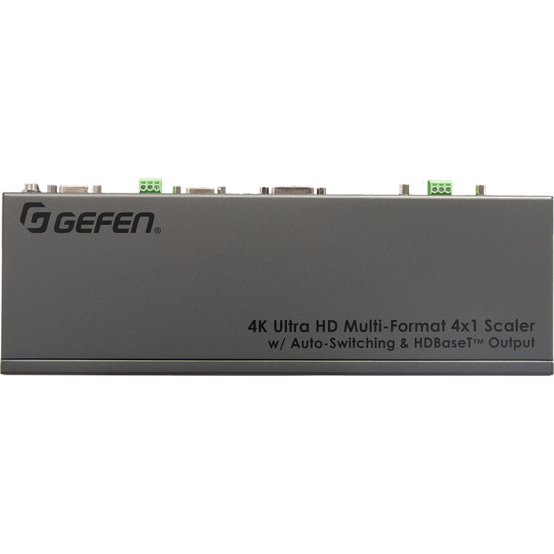 El Gefen EXT-4K300A-MF-41-HBTLS es un conmutador de presentación 4x1 con entradas HDMI, DisplayPort™, DVI y VGA, además de una entrada de audio analógico I/D que complementa las entradas DVI y VGA. Cuenta con salidas HDMI/HDBaseT™ divididas y una salida de audio analógico I/D desembebido. Las 4 entradas se pueden conmutar automática o manualmente. Las opciones de control incluyen el panel frontal, un control remoto IR portátil, infrarrojos eléctricos, RS-232 y cierre de contacto. Las salidas HDMI y HDBaseT™ divididas pueden alimentar simultáneamente una pantalla local y una remota, lo que aumenta la flexibilidad en entornos de presentación más grandes.