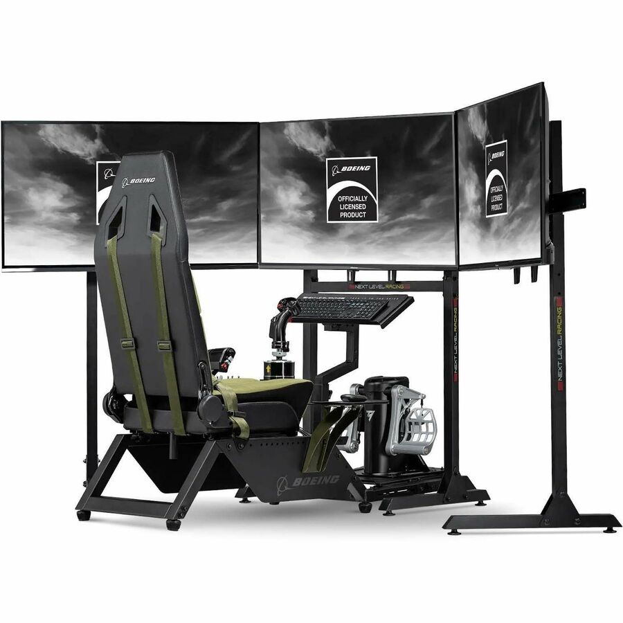 Vuela con Next Level Racing® Flight Simulator Boeing Military Edition, nuestra primera cabina de vuelo diseñada específicamente para la comunidad aeronáutica en colaboración con The Boeing Company. Con componentes de Boeing como la tapicería de lona verde de inspiración militar y detalles en verde militar, la comunidad Boeing ahora puede interactuar con una cabina inspirada en las cabinas de vuelo militares de Boeing. La cabina Flight Boeing Military Edition de Next Level Racing® ofrece una amplia gama de configuraciones para adaptarse a diferentes clases de vuelo, incluyendo combate, espacial, comercial y aviación general. Es compatible con una amplia gama de componentes electrónicos como yugos, joysticks y aceleradores de las principales marcas. Fiel a la cabina militar, el joystick se puede colocar directamente entre las piernas del usuario para una auténtica experiencia de vuelo de combate. Con el creciente ecosistema de accesorios de vuelo de Next Level Racing®, la comunidad aeronáutica puede esperar una solución ideal para la simulación de vuelo. El simulador de vuelo Boeing Military Cockpit de Next Level Racing® está diseñado para ser compatible con el Thrustmaster® TCA Yoke Pack Boeing Edition montado directamente en la cabina con un posicionamiento real del periférico para la experiencia de simulación de vuelo más realista.