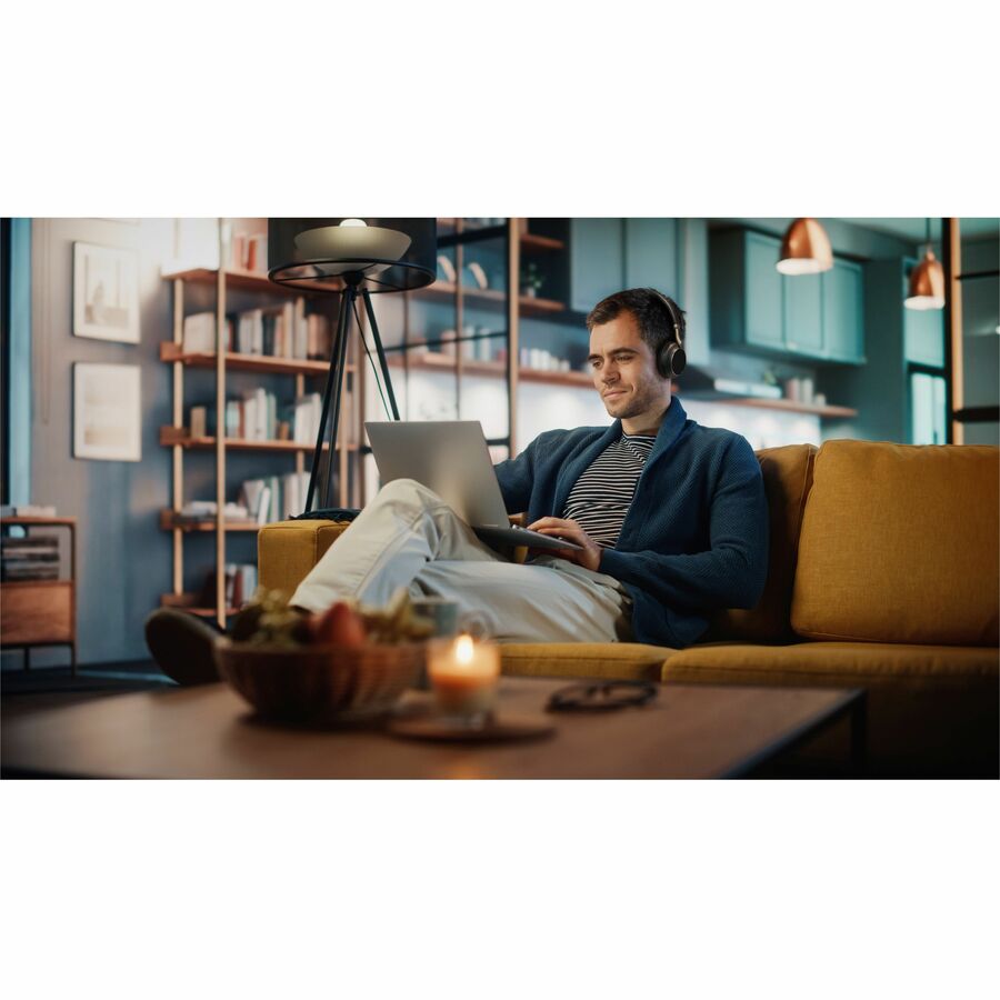- Siéntese cómodamente en cualquier lugar de su habitación, ya que el BH76 Plus UC ofrece un alcance inalámbrico de hasta 150 pies.