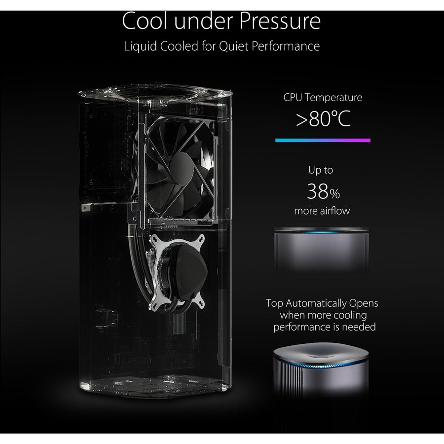 • Las características de enfriamiento avanzado El sistema de enfriamiento líquido de la CPU y el diseño de ventilación de aire adaptativo brindan un rendimiento térmico superior bajo cargas de trabajo completas