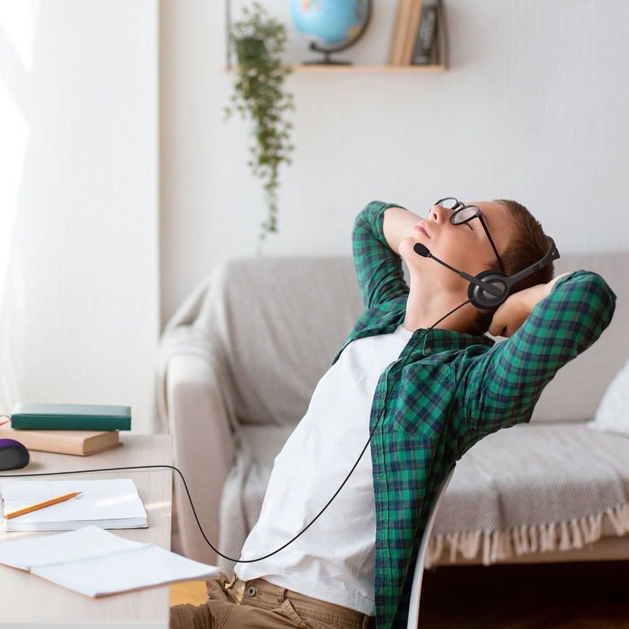 - DIADEMA AJUSTABLE, ALMOHADILLA SUAVE PARA LAS OREJAS Y CABLE LARGO: brindan un uso cómodo y se ajustan durante todo el día y al mismo tiempo permiten que los estudiantes se muevan y se estiren cuando sea necesario.