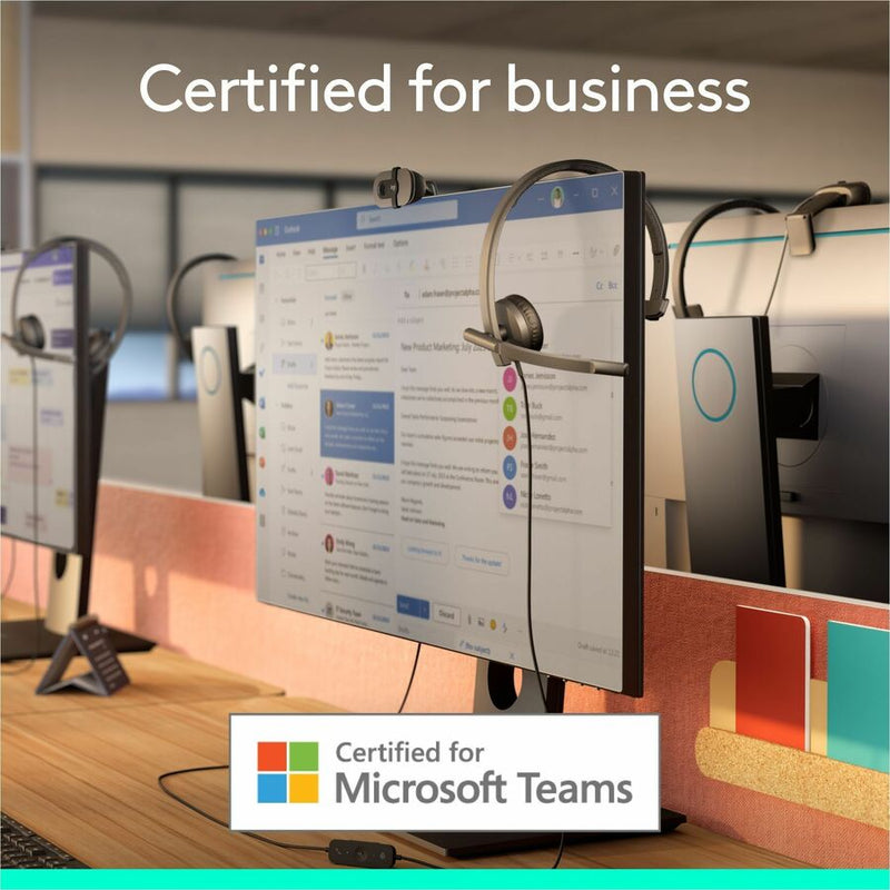 • Certificado para Microsoft Teams: estos auriculares USB cuentan con 2 micrófonos con cancelación de ruido y un controlador de audio de 30 mm para garantizar que pueda escuchar y ser escuchado con claridad en espacios de trabajo abiertos y ruidosos.
