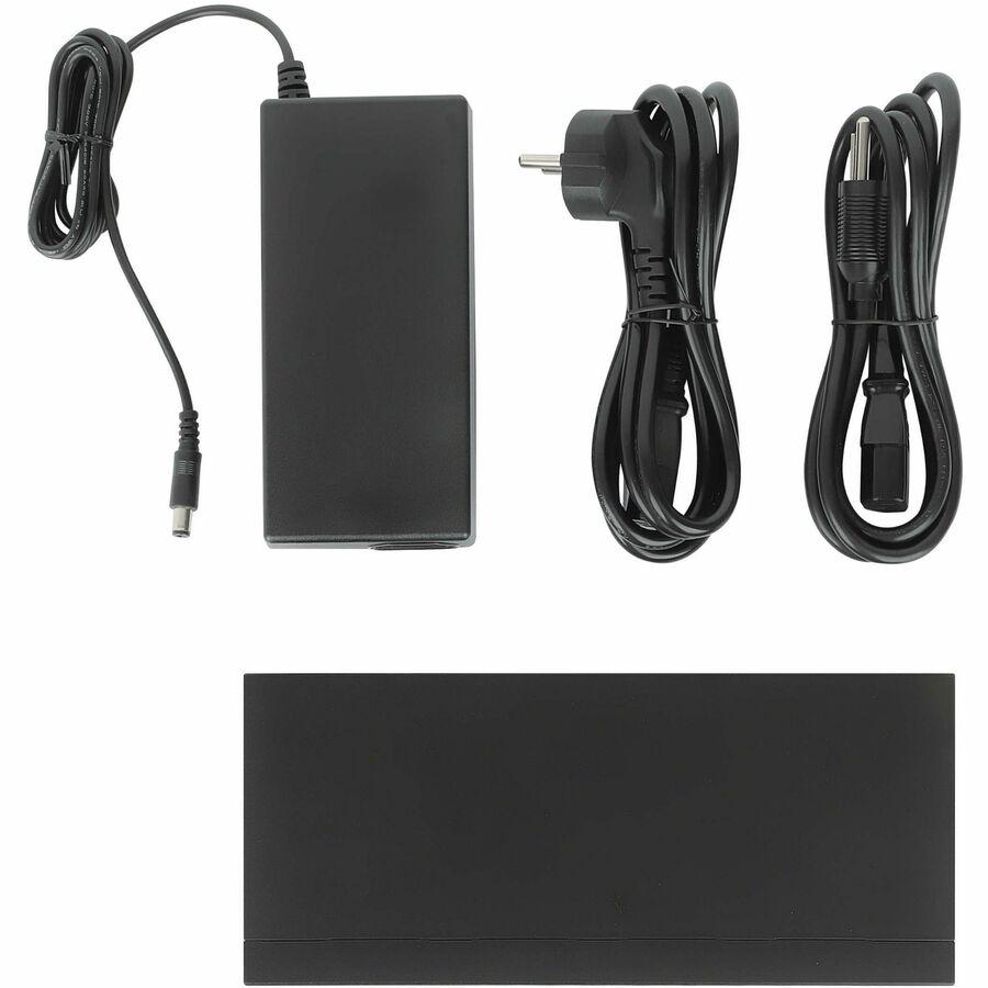 Gracias a la compatibilidad con PoE, este switch de red puede suministrar la energía necesaria para operar dispositivos PoE compatibles, como puntos de acceso y puentes LAN inalámbricos, teléfonos VoIP y videocámaras IP. Esto le ahorra el gasto y el esfuerzo de comprar, conectar e instalar fuentes de alimentación individuales para cada dispositivo. También le permite instalar dispositivos PoE en zonas alejadas de tomas de corriente, como postes o techos. Sus ocho puertos RJ45 admiten hasta 30 W cada uno, con una potencia PoE total de 100 W al usar el adaptador de corriente CA incluido.
