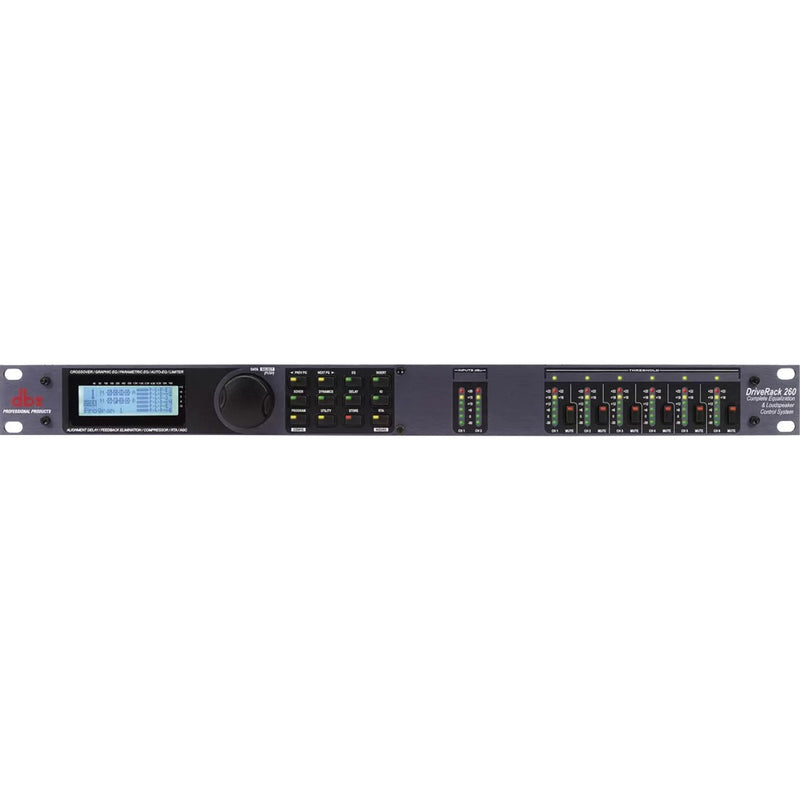 El DriveRack 260 continúa el legado de la serie DriveRack, creada por la compañía que ha redefinido el estándar de procesamiento de señales durante más de 30 años. El DriveRack 260 se diseñó con el propósito y la visión de proporcionar procesamiento de señales de vanguardia, a la vez que utiliza una interfaz de usuario sencilla e intuitiva. Este objetivo se ha logrado ofreciendo dos canales independientes de potencia de procesamiento con un ecualizador gráfico de 28 bandas enlazable, un módulo compresor estéreo dbx estándar de la industria, un eliminador de realimentación y un sintetizador subarmónico de 120 A en la entrada. Además, cuenta con un sistema de salida de seis canales que incluye ecualizadores paramétricos, limitadores PeakStopPlus® (para proteger contra sobretensiones de los altavoces) y retardo de alineación. Estas características, combinadas con el sistema de configuración mediante asistente y el completo control de la interfaz gráfica de usuario DriveWare™, representan un diseño metódico que garantiza un procesamiento óptimo e integral en un sistema completamente escalable.