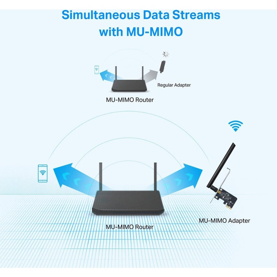 MU-MIMO para una mayor eficiencia Funciona con enrutadores MU-MIMO, que proporcionan flujos de datos simultáneos, lo que aumenta el rendimiento y la eficiencia.