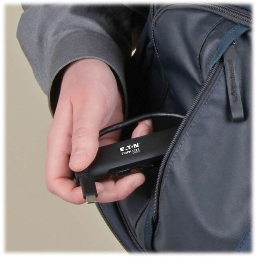Concentrador Eaton Tripp Lite serie USB 3.x (5 Gbps) de 3 puertos con puerto LAN, puertos USB-C a 3 puertos USB-A y Gigabit Ethernet, negro