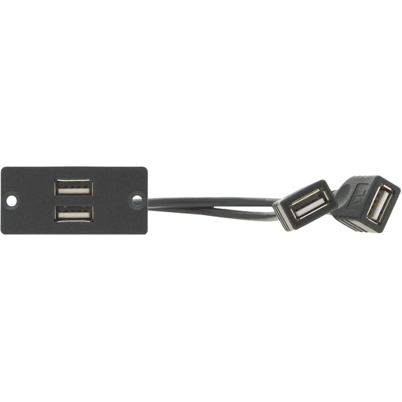 El WU-2AA es un inserto de placa de pared único con dos puertos USB 2.0 Tipo A y dos cables con conectores USB Tipo A en la parte trasera.
