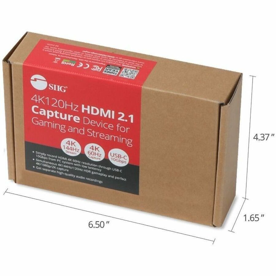 Dispositivo de captura HDMI 2.1 SIIG 4K 120 Hz para juegos y streaming - Captura 4K 60 Hz - Salida en bucle 4K 120 Hz/144 Hz - USB-C 10 Gbps - Compatible con TAA
