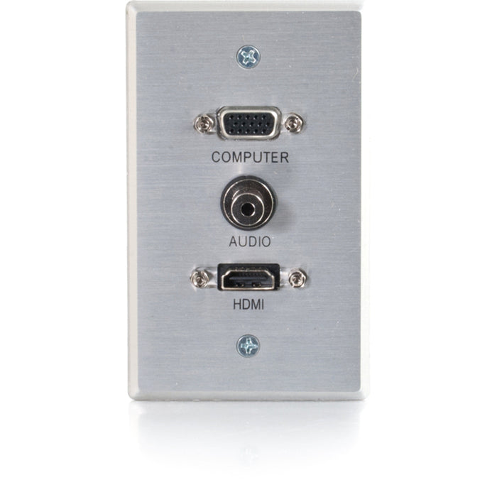 Placa de pared C2G con paso de audio de 3,5 mm, HDMI, VGA y una sola salida, de aluminio cepillado