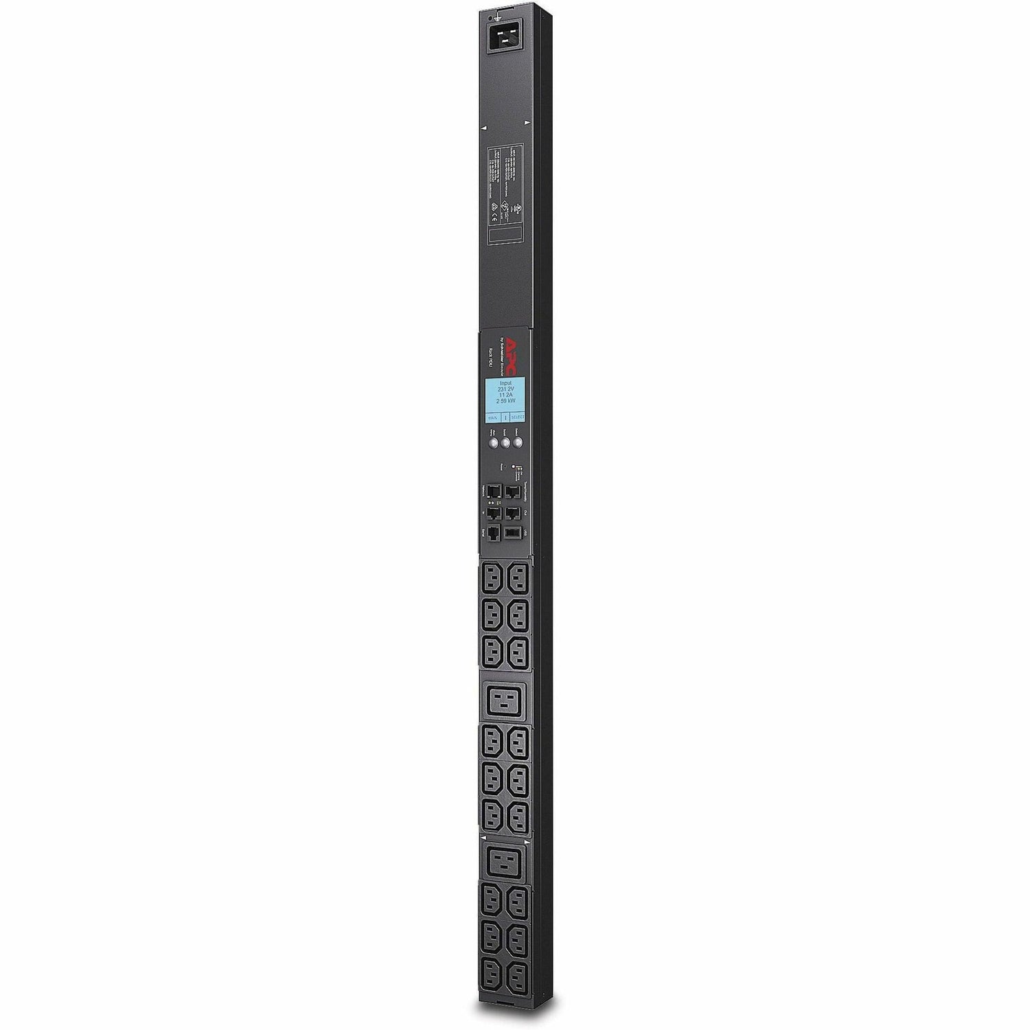 PDU de rack con medidor NetShelter de APC, 0 U, monofásica, 3,3 kW, 208 V, 16 A o 3,7 kW, 230 V, 16 A, 18 salidas C13 y 2 C19, entrada C20