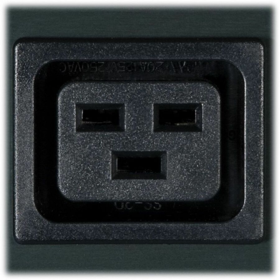 La PDU 0U cuenta con 42 tomacorrientes (36 C13 y 6 C19) con fundas de inserción con seguro para evitar que los cables se desconecten accidentalmente. Un cable de 3 metros con enchufe NEMA L6-30P conecta la PDU a una fuente de alimentación de CA, generador o SAI protegido compatible.
