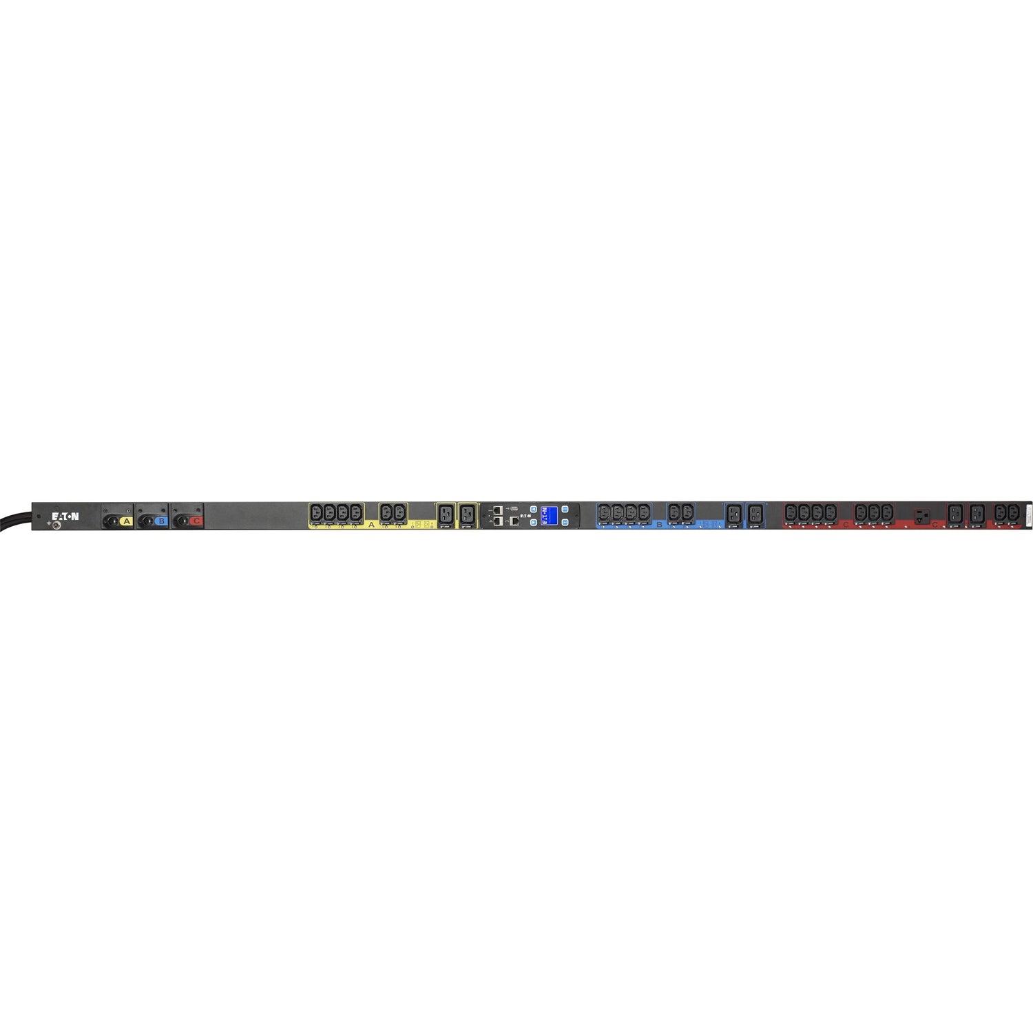 PDU de rack administrada Eaton, 0U, entrada L21-30P, 8,64 kW máx., 120/208 V, 24 A, cable de 10 pies, trifásico, salidas: (1) 5-20R, (21) tomacorrientes C13, (6) tomacorrientes C19 - Compatible con TAA.