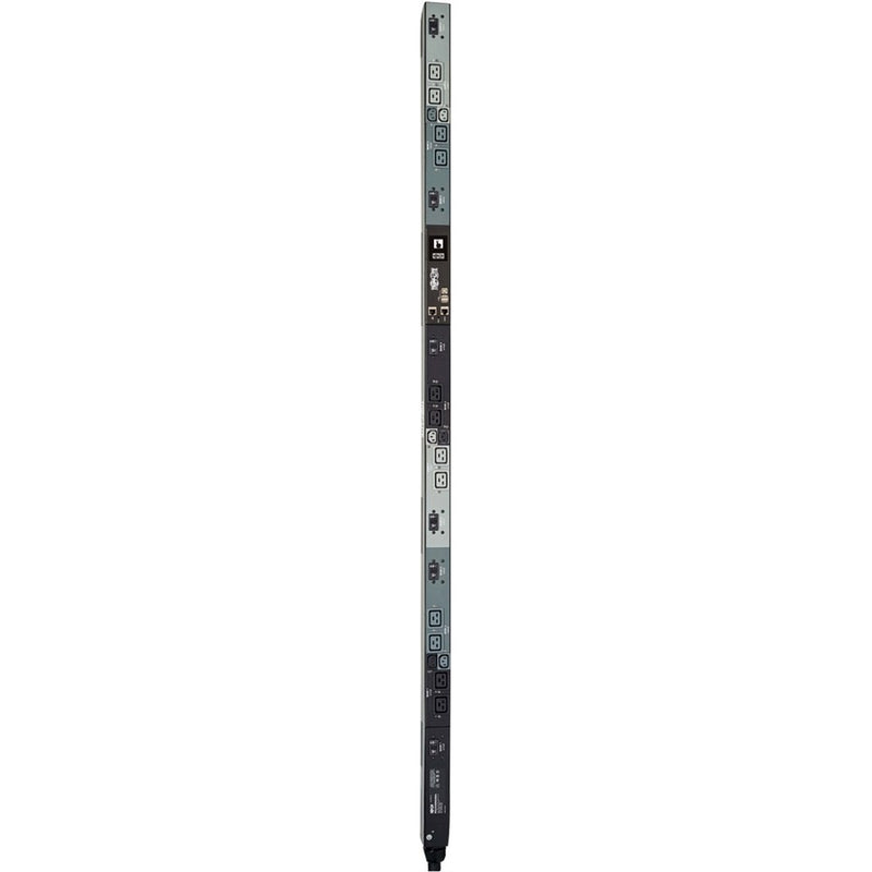 Esta PDU monitoreada proporciona monitoreo remoto en tiempo real de los niveles de voltaje y carga a través de su interfaz de red integrada. Ideal para su centro de datos, sala de computadoras o armario de red de alta densidad, la PDU3EVNR6G60A cuenta con 12 tomacorrientes C19 y seis C13 de 208/240 V en tres bancos de carga con interruptores, que distribuyen la alimentación de CA a los equipos del rack. Incluye fundas de inserción con bloqueo de enchufe para evitar que los cables del equipo se desenganchen accidentalmente.
