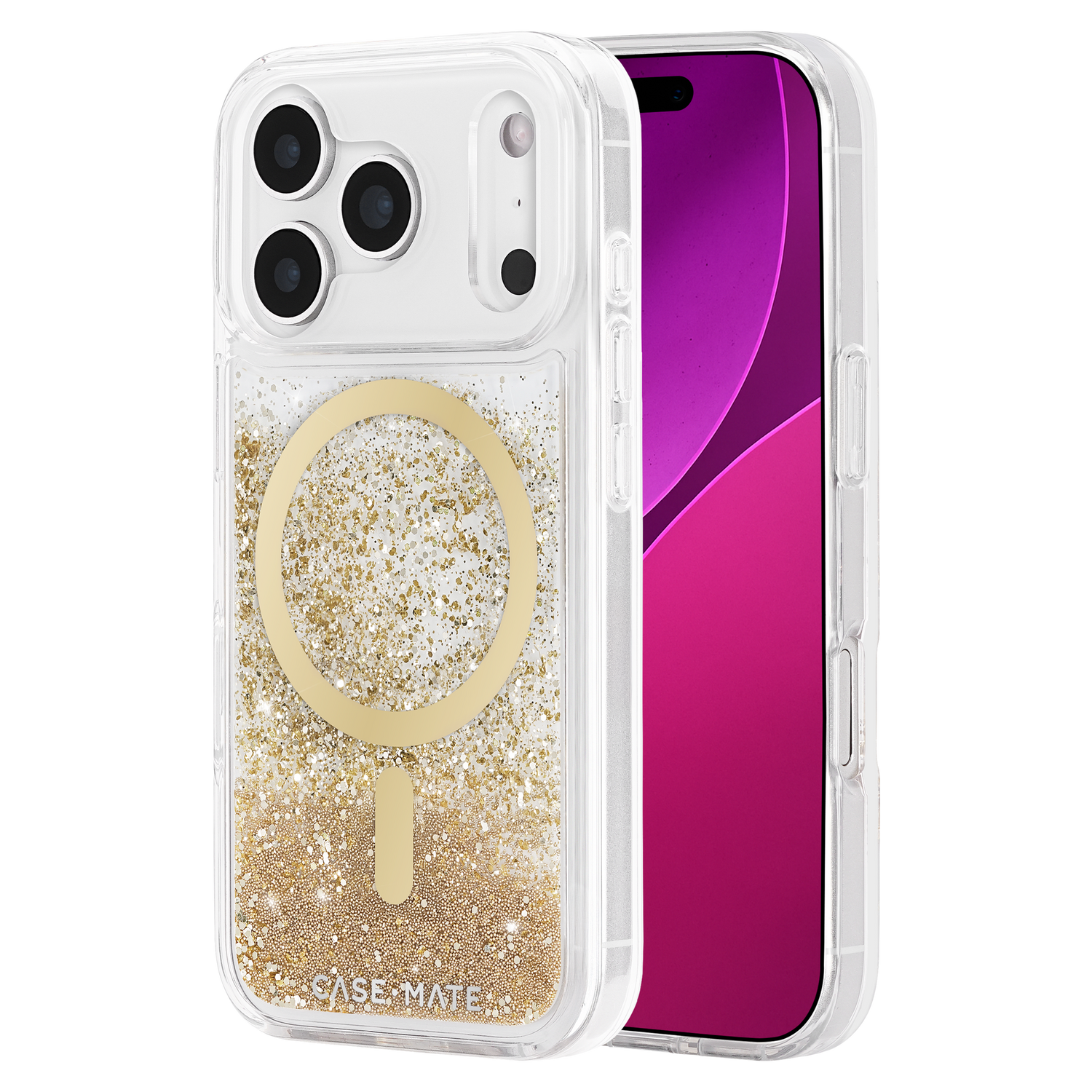 Case-Mate Waterfall MagSafe Case for Apple iPhone 17 ProShake me up! The Waterfall MagSafe Phone Case for the iPhone 17 Pro features eye-catching glitter that moves with you! Case-Mate knows how much you love your phone so feel confident knowing its safe with 12-foot drop protection while strong built-in magnets allow for easy MagSafe accessorizing and charging. Product Features12ft Drop protectionUnique glitter design moves with youStrong built-in magnets for magsafe100 Cosmetic-grade mineral oilAnti-scratch coatingsStays clear with UV protectionLifetime Warranty