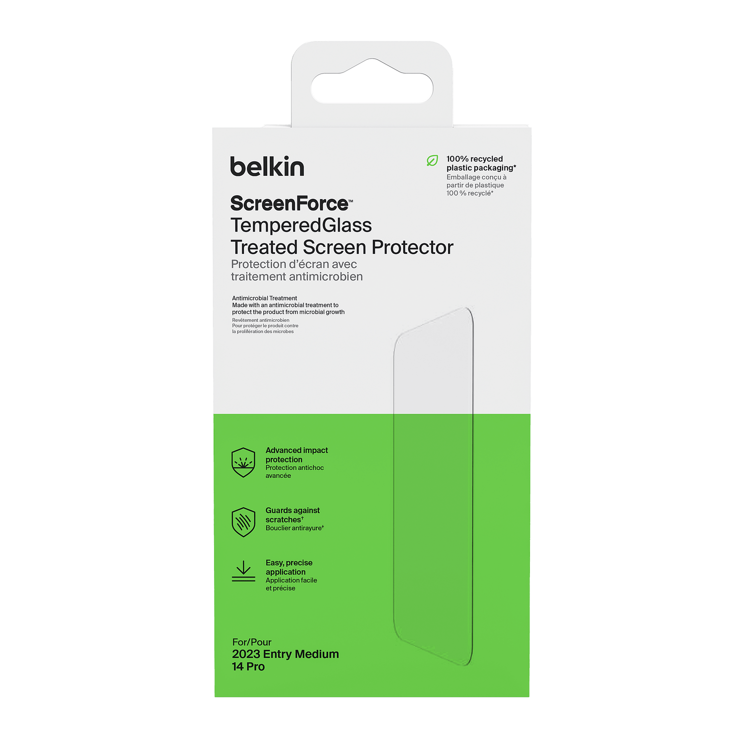 Belkin - Protector de pantalla de cristal con bandeja Ez Tray para iPhone 15/iPhone 16 - Transparente