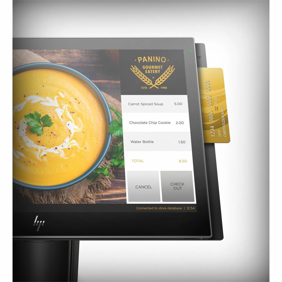 • Establezca un nuevo estándar de sofisticación con componentes y accesorios que complementan la estética del sistema HP Engage One, incluidos soportes, lector de banda magnética, escáner de código de barras, pantallas orientadas al cliente y una impresora de recibos independiente o en columna.