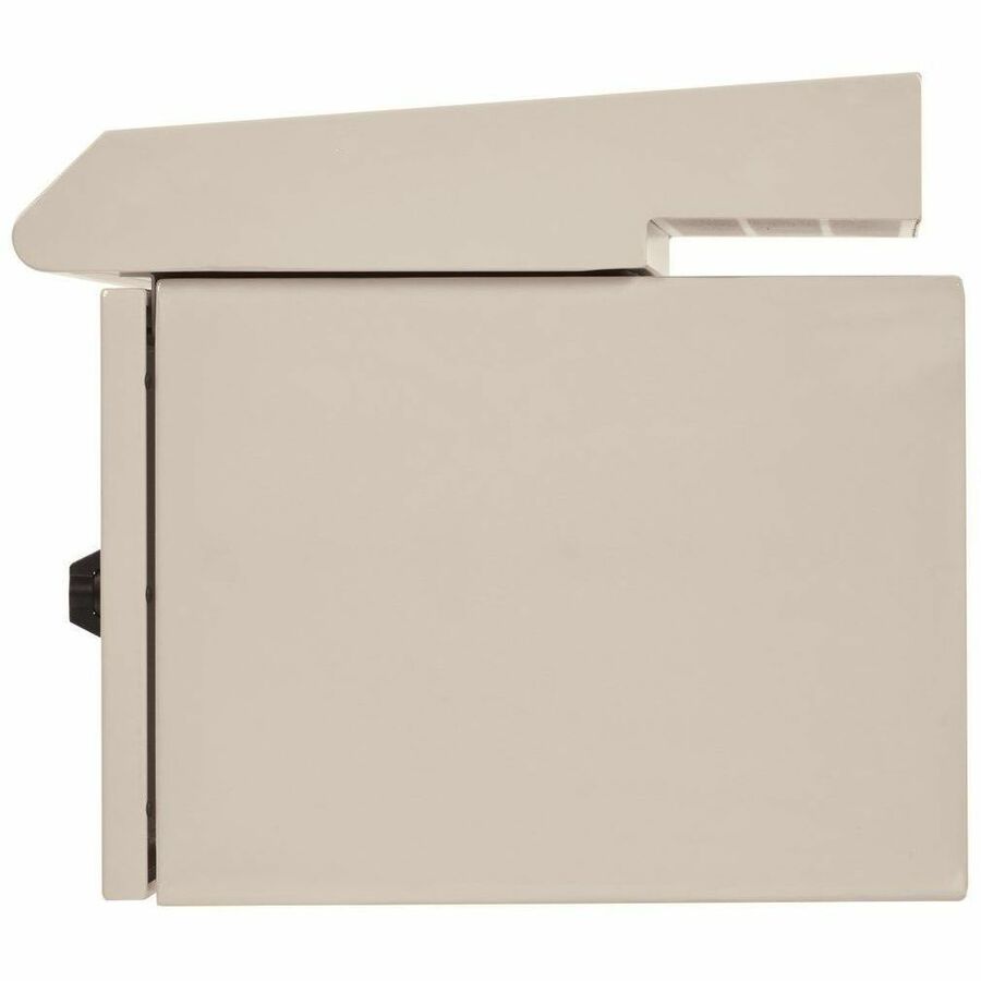 The fully welded steel housing locks securely with the included keys to protect its contents against theft, tampering and unauthorized access. The enclosure swings away from the wall on a sturdy hinge, allowing easy back-door access to equipment and cabling during installation and maintenance. Data and power cables may be routed through a bottom conduit cutout.