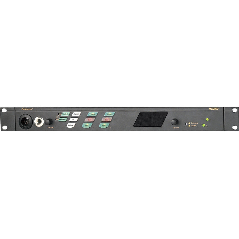 Conecte cualquier fuente de audio de nivel de línea para monitorizarla en el altavoz o auricular, o para enrutarla al canal de intercomunicación. El audio del programa del canal puede configurarse para que se interrumpa mientras el operador del MS-2002 habla por él.