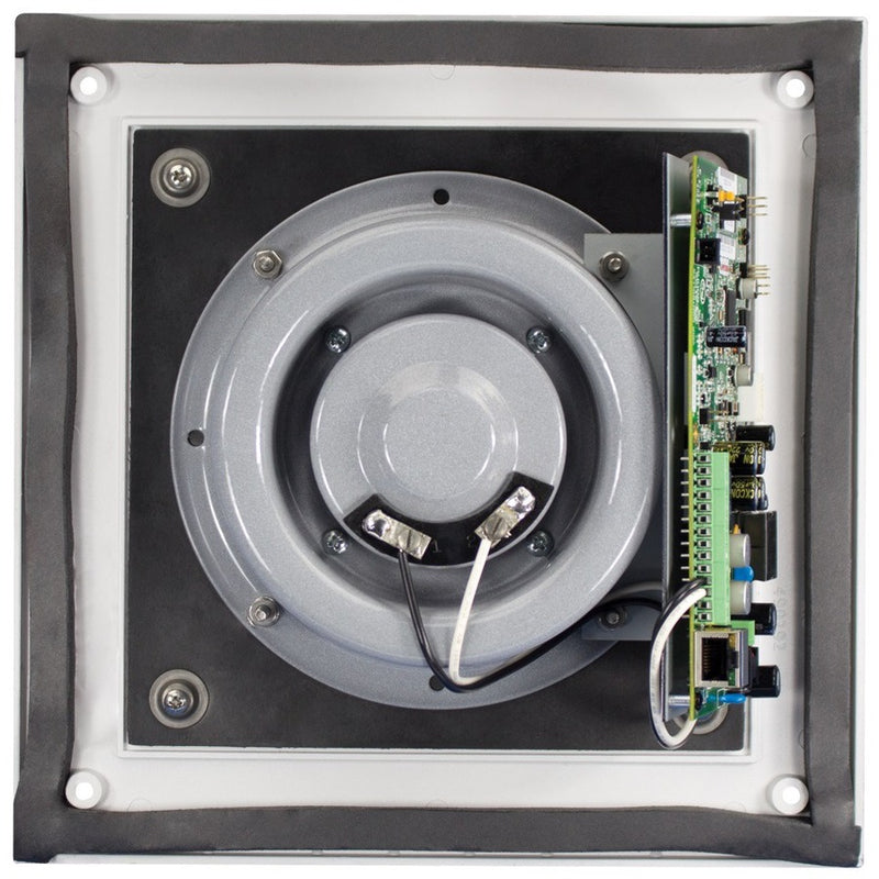 Todos los altavoces AtlasIED IP constan de un altavoz ensamblado en fábrica, una rejilla y una placa de control/amplificador PCB que se monta de forma segura en la parte trasera de la rejilla.