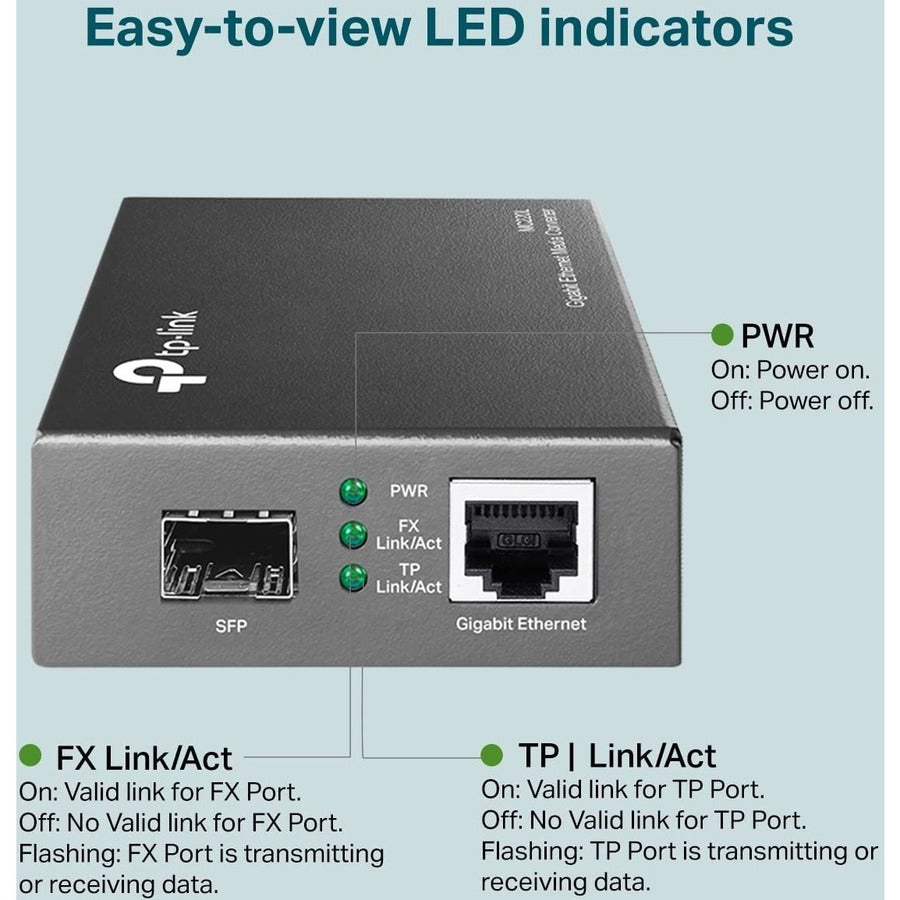 TP-LINK MC220L - Convertidor de medios de fibra Gigabit SFP a RJ45