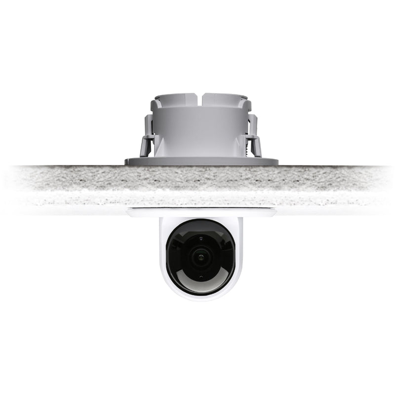 Accesorio de montaje empotrado en techo para la cámara UVC-G3-FLEX. Instale la cámara en el techo o en una placa de techo para una instalación limpia y discreta. Incluye herrajes de montaje para instalación en pladur, superficie sólida o placa de techo. Un tornillo de seguridad opcional fija la cámara al soporte desde arriba para mayor seguridad.