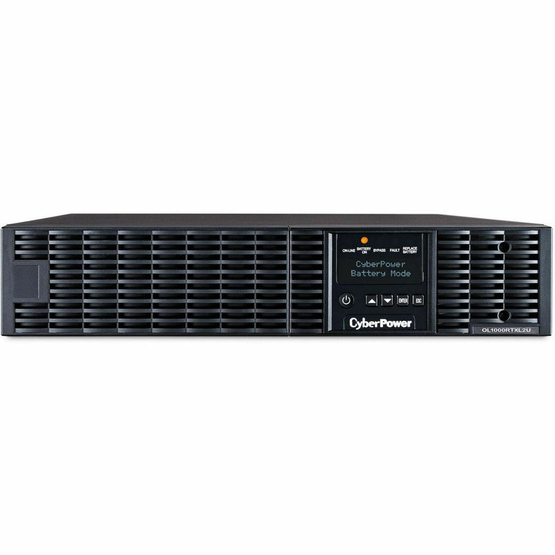 The CyberPower OL1000RTXL2U is a rack/tower UPS with double conversion topology. It provides sine wave output to critical applications and equipment that require seamless power correction. The Extended Battery Module (EBM) expands runtime, and Fast Charge Technology restores full backup power faster. This model comes with an extendable LCD control panel, Smart Battery Management charging technology, and energy-saving GreenPower UPS™ ECO Mode.