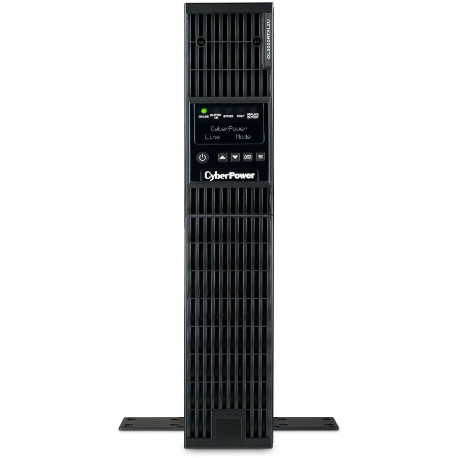 The CyberPower OL3000RTXL2U is a rack/tower UPS with double conversion topology. It provides sine wave output to critical applications and equipment that require seamless power correction. The Extended Battery Module (EBM) expands runtime, and Fast Charge Technology restores full backup power faster. This model comes with an extendable LCD control panel, Smart Battery Management charging technology, and energy-saving GreenPower UPS™ ECO Mode.