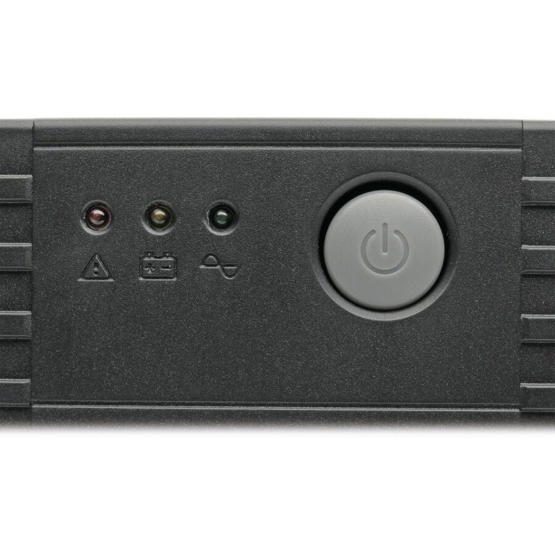 Tres indicadores LED en el panel frontal monitorean información esencial, como los modos en línea, de batería y de falla. Una alarma sonora sonará en caso de batería baja, carga excesiva o falla.