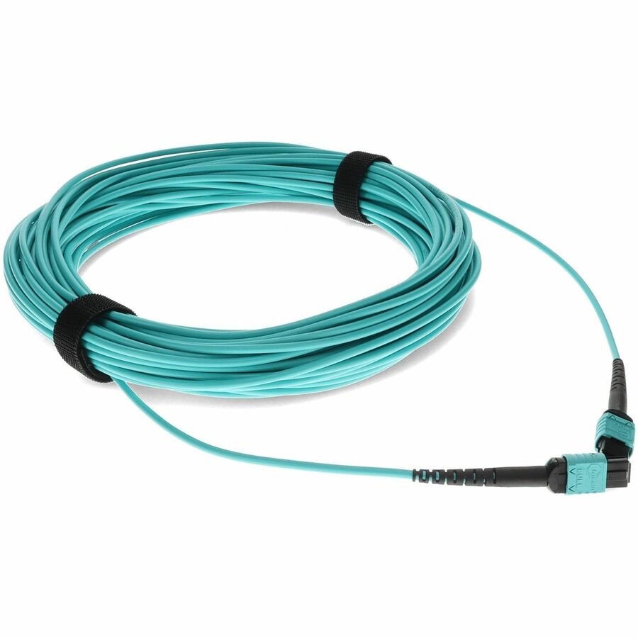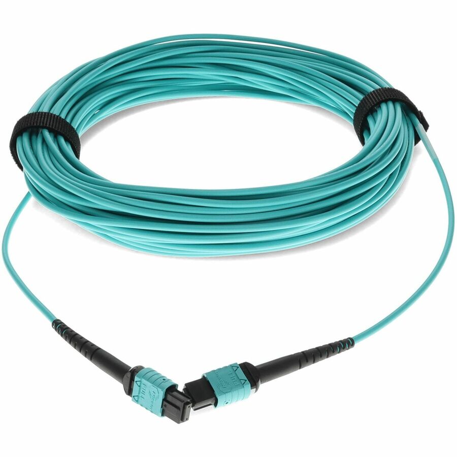 Este es un cable de conexión de fibra óptica MPO (hembra) a MPO (hembra) de 40 m, de 12 hilos, cruzado, color aguamarina, con clasificación plenum. Un cable OM4 tiene un diámetro de núcleo de 50 m y admite 10 Gigabit Ethernet en longitudes de hasta 550 metros, y 100 Gigabit Ethernet en longitudes de hasta 150 metros, además de ser compatible con versiones inversas de OM3. Este cable de fibra óptica, no conductor, plenum (OFNP) es ideal para aplicaciones interiores de fibra óptica. Nuestros cables de conexión cumplen con todas las normas para todas sus necesidades de red. Nuestros productos están garantizados por la ley federal de no afectar ni anular las garantías de los fabricantes de equipos originales (OEM).