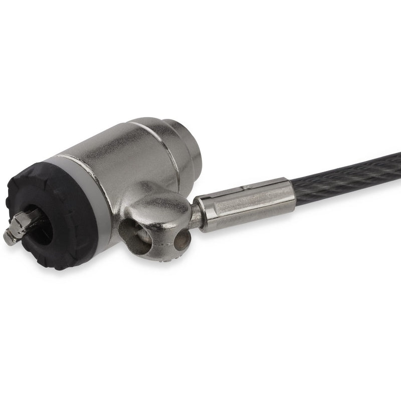 - CABLE DE SEGURIDAD PARA PORTÁTIL CON RANURA K: Cable de seguridad de acero recubierto de vinilo resistente a cortes de 6,5 pies (2 m) (4 mm de grosor); cabezal de bloqueo de 17 mm de diámetro; compatible con ranura estilo Kensington; probado hasta 265 lb de fuerza