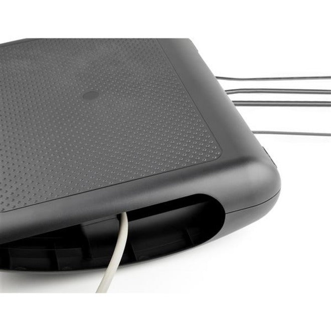 Almacenamiento de barra de energía integradoEl reposapiés ergonómico cuenta con espacio de almacenamiento integrado para la regleta de una sola fila, así como con un sistema de gestión de cables integrado para cualquier dispositivo conectado a la regleta. Esta característica proporciona comodidad sin comprometer la gestión de cables de su estación de trabajo.