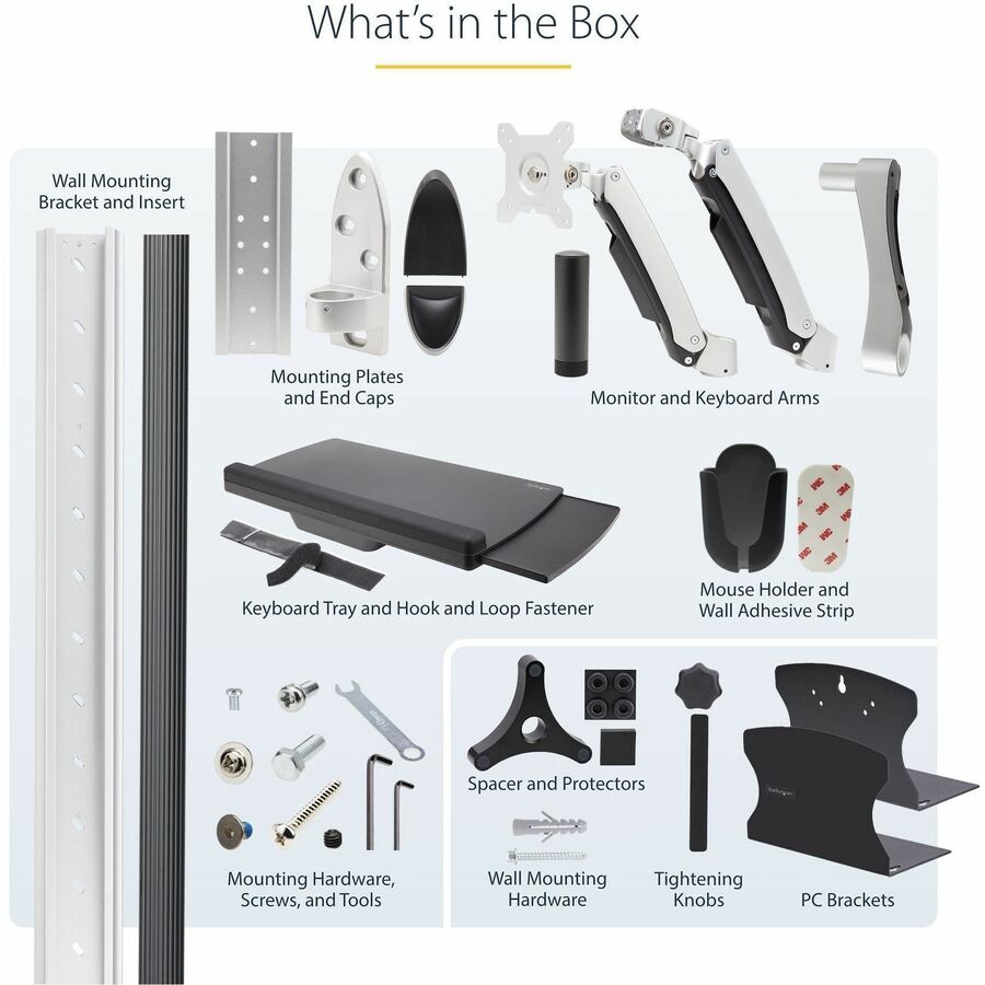 Estación de trabajo de montaje en pared StarTech.com, soporte VESA de 10 kg, soporte para monitor y bandeja para teclado totalmente articulados, escritorio de pie con soporte para PC