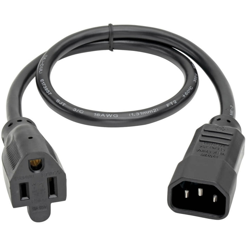 Eaton Tripp Lite Series NEMA 5-15R to C14 Computer AC Power Cable - 13A, 125V, 16 AWG, 2 ft. (0.61 m), Black