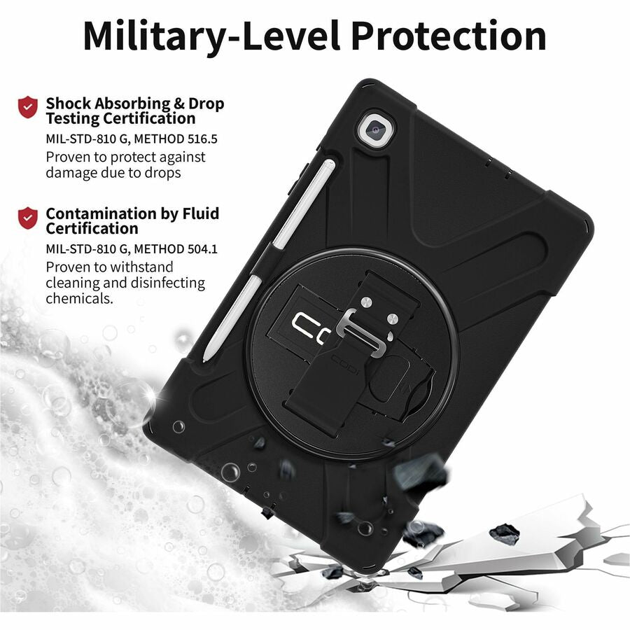 Get a complete 3-in-1 solution that provides 360-degree device protection from CODi for ultimate protection. Case comes complete with S Pen or stylus pen storage, a rotating kickstand, and a hand/shoulder neoprene strap. This durable cover is drop-resistant, shock-absorbing, and can be used for work or school. Case includes a polycarbonate tray and front with a thick and raised silicone bumper for increased corner protection. CODi's Rugged Cases are easy to install, comfortable to use, and gives the user confidence their device is protected. No matter the environment, your device is sure to survive all bumps and drops.