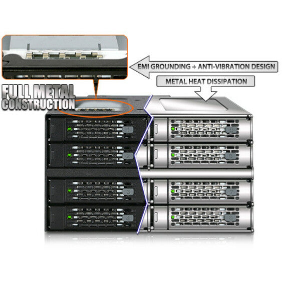 To protect against environmental damage, your drives are surrounded in a full metal chassis with full-metal trays, meeting the ruggedized flammability requirements of industrial, military, and medical applications.