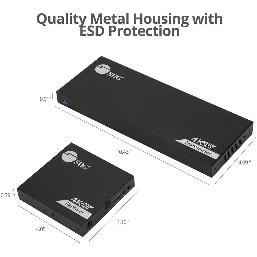 SIIG 1x2 4K60Hz HDMI Splitter Over Cat6 Extender with Loopout/IR/ARC & RS-232 - Up to 230ft (70m) - Near Zero Latency