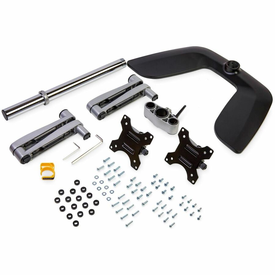 Mounting your displays on a dual-monitor stand above the desk surface enables you to adjust your display height, position and viewing angles for an ergonomic workspace. The swiveling arms provide maximum viewing flexibility, letting you work in comfort.