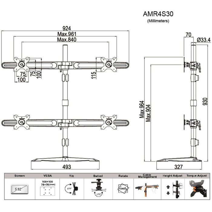 23% de réductionAmer Quad Monitor Stand Mount for 32" Displays